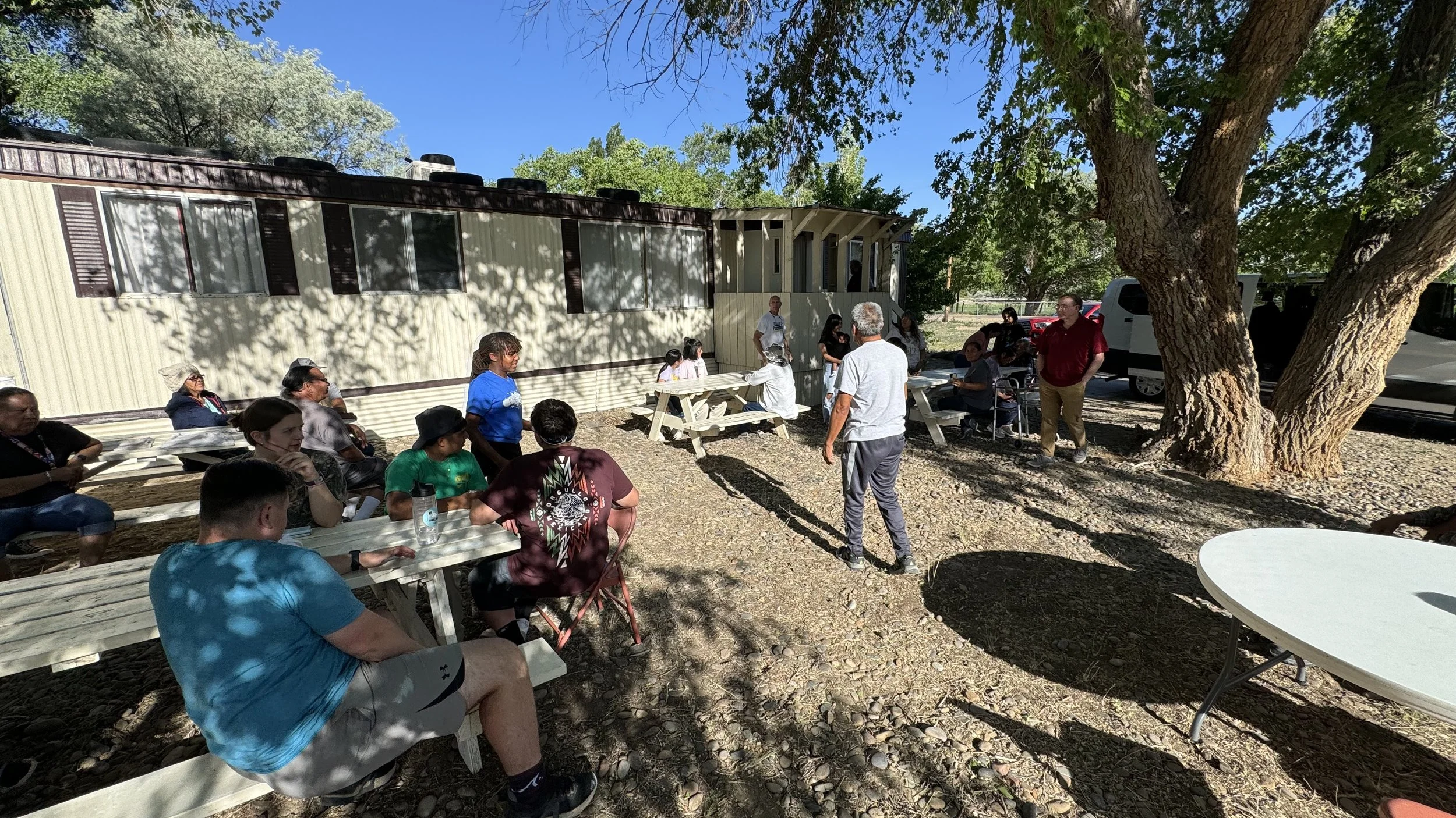 The second part of our work day after lunch included working at a church members home. Rewind to earlier in the morning, John Green and myself (Shane) drove to the ShipRock church of Christ, which is on the reservation and met with someone who lives on the property. They showed us some projects that were needing to be done at the church and were able to show us the location of a home that was in need of some work. We drove a few miles down the street to the home and spoke to the lady who is wheelchair bound. She lives on the same property as another relative. When we drove up to the home, we were greeted with the Navajo word, Ya’at’eeh abini which means “good morning.” The kindness showed at the home was wonderful. The Navajo are very kind and welcoming. She told us about a few issues that she was having at the home and some other projects she would like to have completed. We gathered information on what was needed to be fixed and headed back to Hogback. Fast forward to after lunch, a group headed out there to begin work on those projects and we will continue again tomorrow.