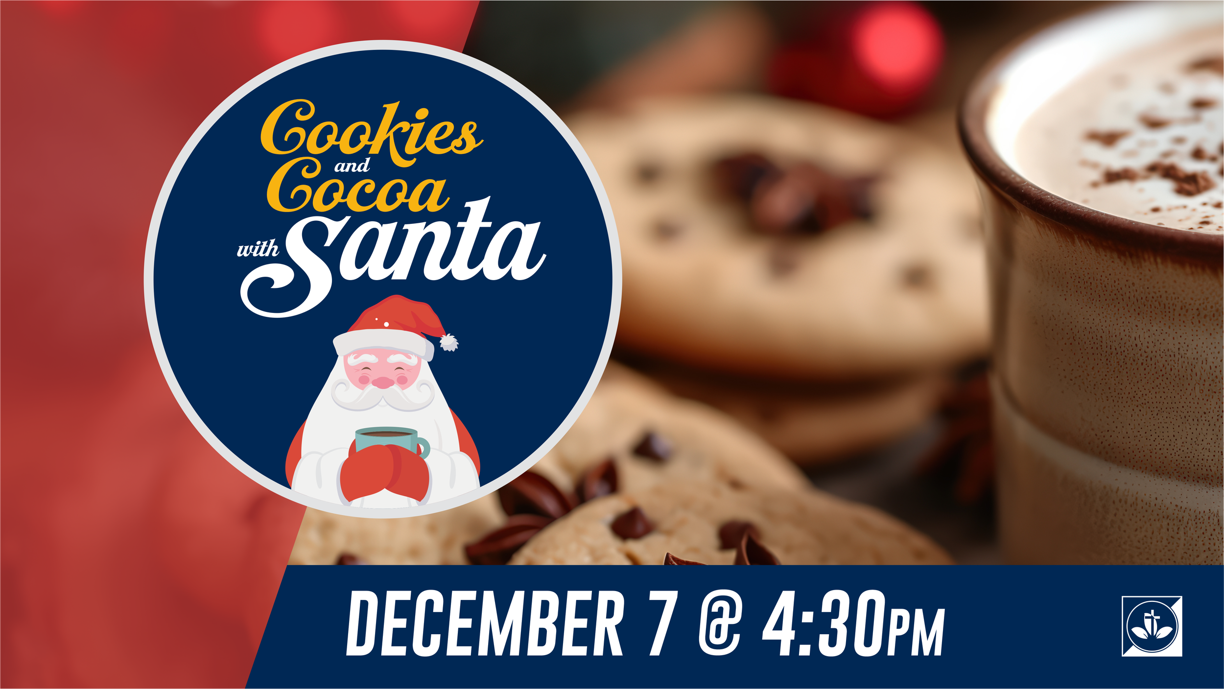 You’re invited to Cookies & Cocoa with Santa on Sunday, December 7 at 4:30 pm in the Fellowship Hall.